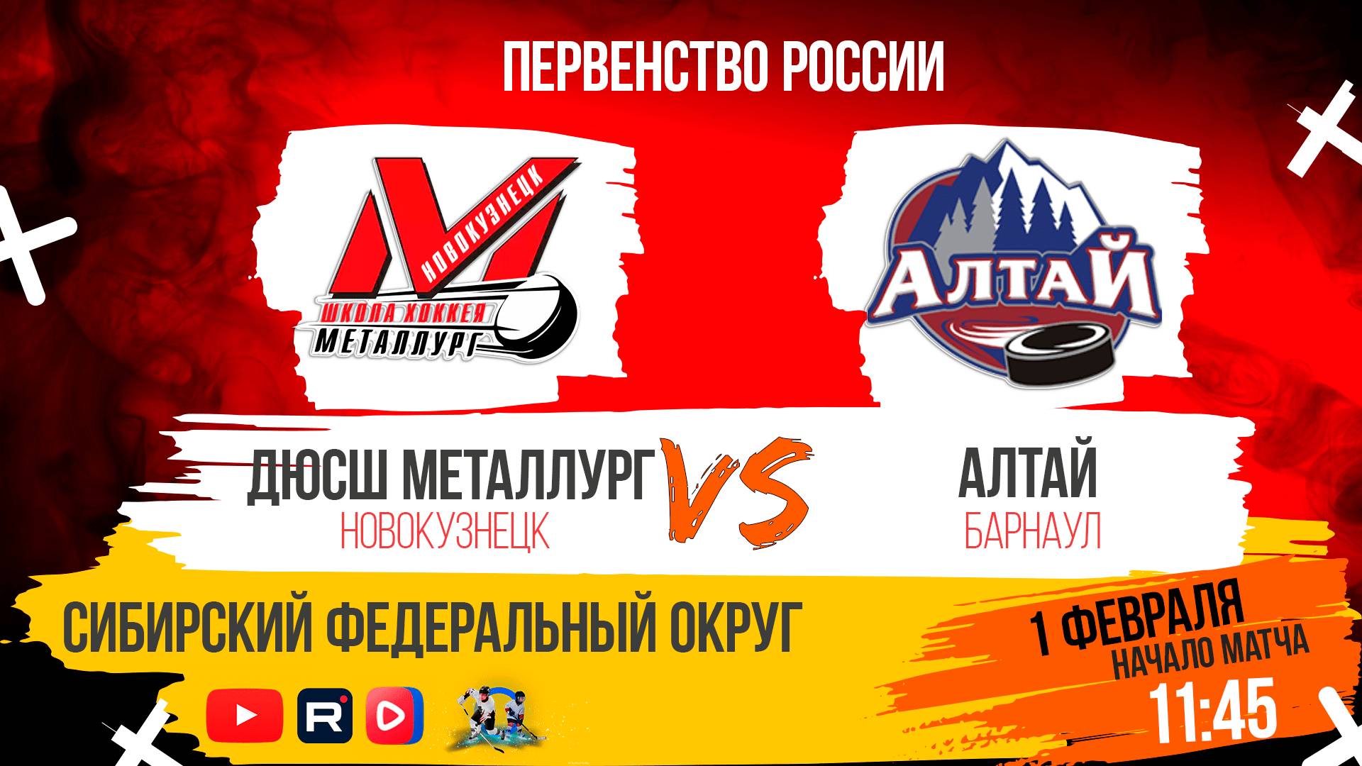 ПРЯМАЯ ТРАНСЛЯЦИЯ МАТЧА 01.02.2025г. в11:45 ДЮСШ МЕТАЛЛУРГ (Новокузнецк) VS АЛТАЙ (Барнаул) ПЕРВЕНСТВО РОССИИ СРЕДИ ЮНОШЕЙ 2011 г.р. СИБИРСКИЙ ФЕДЕРАЛЬНЫЙ ОКРУГ САЙТ ПЕРВЕНСТВА (РЕЗУЛЬТАТЫ, СТАТИСТИКА): http://sfo.fhr.ru СТАДИОН: МАЛАЯ АРЕНА НР КОММЕНТАТОРЫ: Антон Сергеев ТРАНСЛЯЦИЯ НА YOUTUBE: https://youtube.com/live/ZaMzuofNIiY?feature=share ТРАНСЛЯЦИЯ В СООБЩЕСТВЕ VK: https://vkvideo.ru/video-229078074_456239048