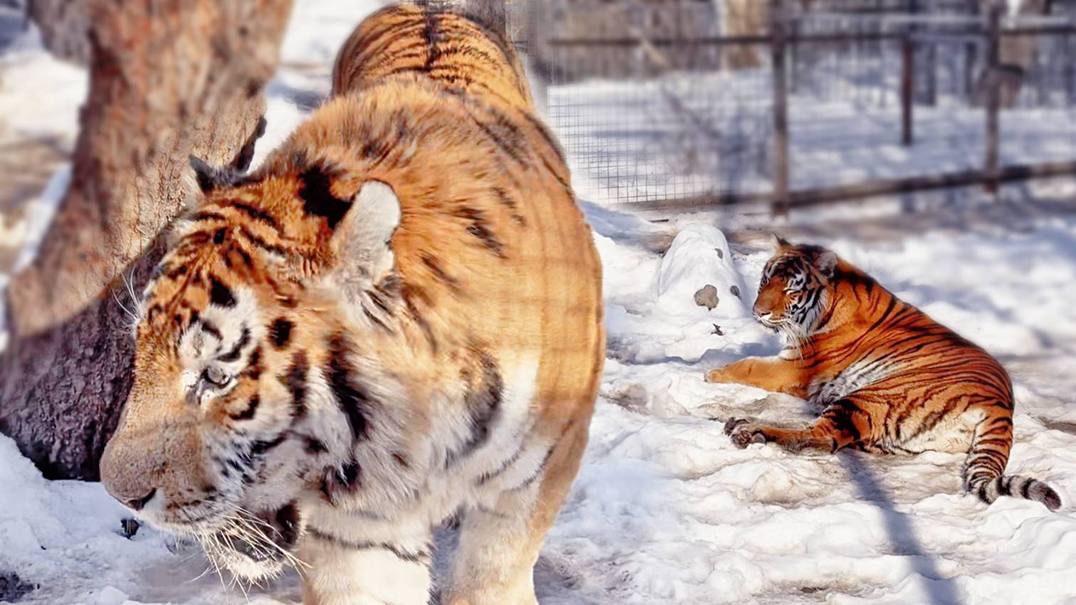 Огромный тигр, спасенный из Геническа, подошел поздороваться!Белые и рыжие тигры кайфуют- УРА, СНЕГ!