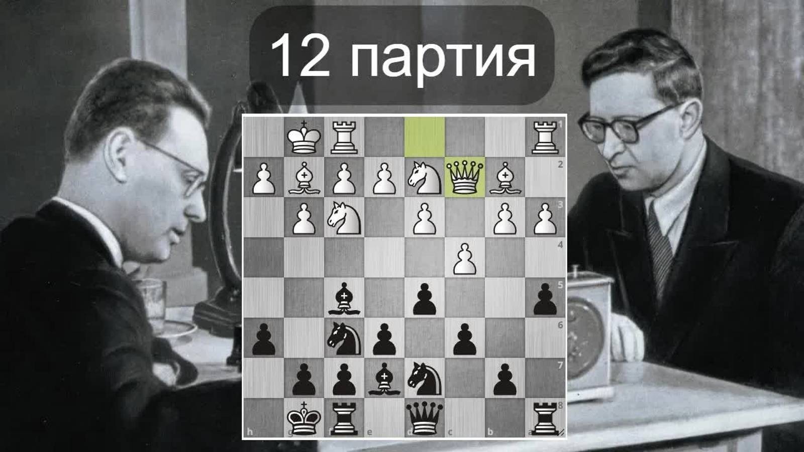 М.Ботвинник-В.Смыслов Напряженная борьба в 12-й партии! Шахматы