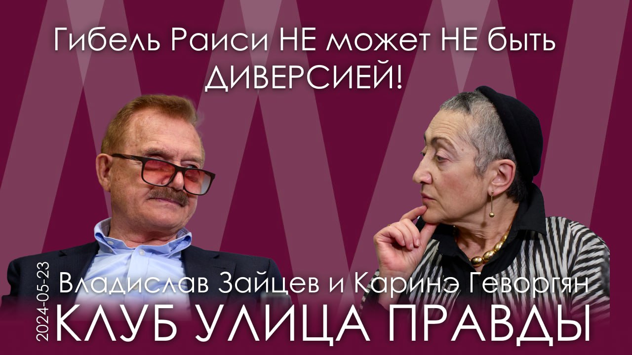 Заседание Клуба Улица Правды 23 мая 2024 года В.Н. Зайцев, К.А. Геворгян. Гибель Раиси – это НЕ может НЕ быть диверсией. Иран – восходящая держава • Как только стало известно о том, что вертолет с президентом Ирана пропал с радаров, на медийном поле сразу же наметились разные типы «вбросов». • Одни вбросы ориентированы на внутреннюю иранскую публику, другие на тех, кто об Иране знает мало и живёт карикатурными картинками западной пропаганды. • Летело три вертолета, два благополучно приземлились. И сразу же посыпалось как из рога изобилия огромное количество объяснений от разных специалистов, как будто часть этих материалов была заготовлена заранее. • Самая активно распространяемая версия настаивала на том, что это техническая авария, и что Раиси летел на стареньком американском вертолёте, собранном из разных запчастей. • Общий уровень западной прессы при освещении этого события вызывает ощущение не просто полной деградации, а оскотинивания. • Май насыщен подозрительными событиями. Что произошло с наследным принцем Саудовской Аравии? С премьер-министром Словакии? Какая-то обойма выстрелов по первым лицам. • Когда вертолет пропал, тут же, как будто бы уже было всё заготовлено, официальные лица западных держав выскочили и заявили, что они здесь вообще ни при чём. Хотя у них и не спрашивали. • Это не может не быть диверсией. Если выглядит как утка, крякает как утка и летает как утка, то, скорее всего, это утка. Здесь и выглядит, и летает, и крякает. • Американцы в Омане вели переговоры с Ираном. Вашингтонскому глобалистскому центру гибель Раиси была не выгодна и срывала эти переговоры. • Израилю одновременно и выгодно, и очень невыгодно. И хочется, и колется. Поэтому они сразу же объявили, что ни при чём. Рады, но ни при чём. • На Алиева брошена тень, потому что именно Баку настоял на том, чтобы на церемонии открытия плотины присутствовал президент Раиси. Там изначально должен был быть только министр иностранных дел. Раиси как будто заманили на эту церемонию. • На похоронах Сулеймани больше было накала, гнева. Страсть вырывалась. Здесь в поведении толпы была заметна не просто скорбь, но и некое почитание, причем у людей самых разных возрастов. Вокруг Раиси образуется какой-то орел святости. • В Иране нет ни одной должности, на которой была бы сосредоточена высшая власть. Там сложная система сдержек и противовесов. • Благотворительность в Иране очень развита. И во многом это объясняет популярность покойного президента, потому что он этим занимался непосредственно и систематически. Он ездил из города в город и говорил, что для него самое главное - обеспечить обездоленных. • Какие два главных врага на Ближнем Востоке? Это Иран и Израиль. Но многие не знают, что Израиль существует только благодаря тому, что когда-то персидский царь освободил их из Вавилонского плена и дал им средства на строительство храма. И из всех стран Ближнего Востока синагог больше всего в Иране. И они финансируются государством. • В Иране нет бытового антисемитизма. В культурном плане огромная терпимость друг к другу. Люди, которые выражают ксенофобию внутри общества, нерукопожатны. • Иранская молодёжь в целом настроена протестно. Но ситуация постоянно находится в состоянии динамического равновесия. • Россия и Иран оказались в схожих обстоятельствах. Наши геостра
