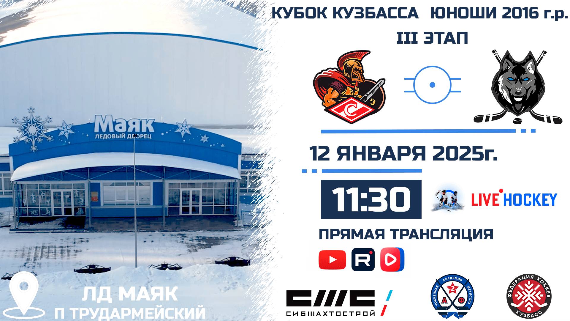 ПРЯМАЯ ТРАНСЛЯЦИЯ МАТЧА 12.01.2025г. в 11:30 СПАРТАК (Белово) VS МЕТАЛЛИСТ (КМО) КУБОК КУЗБАССА СРЕДИ ЮНОШЕЙ 2016 г.р. ССЫЛКИ НА МАТЧИ: https://bit.ly/TYTCLICK СТАДИОН: ЛД МАЯК КОММЕНТАТОРЫ: Сергей Пичугин ТРАНСЛЯЦИЯ НА YOUTUBE: https://youtube.com/live/Jwkma0Redk8?feature=share