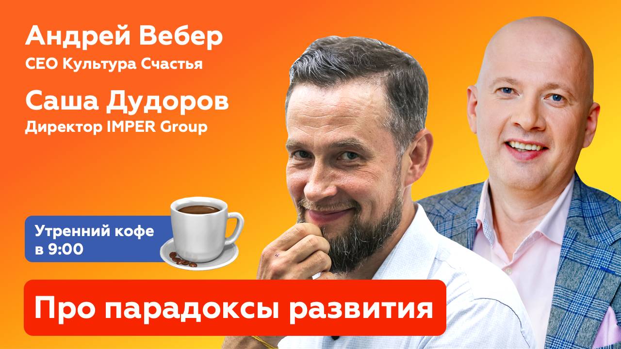 Классный эфир с моим большим другом и партнером Сашей Дудоровым - директором ImperGroup (https://t.me/impergroup). 🔹 куда нас всем дальше развиваться? 🔹 какой философии развития отдаться? 🔹 откуда родом новый феномен - аскеза на обучение? 🔹 как обучение конфликтует с реальностью? 🔹 в чем самый главный парадокс личного развития для каждого из нас? 🔹 как строить корпоративные программы с учетом парадоксов? Анонсы новых эфиров и самобытный взгляд на HR в тг-канале "Андрей Вебер | Культура счастья" https://t.me/IDofHR