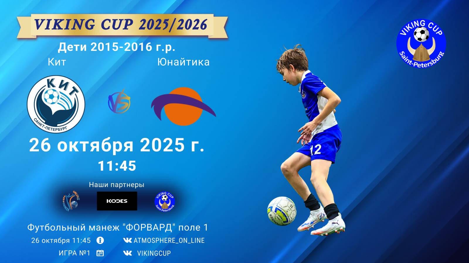 VIKING CUP среди команд 2016 г.р. (U9), Поле 1 26 октября 2025 САНКТ-ПЕТЕРБУРГ, ФЦ "Форвард" ФК "Кит" - ФК "Юнайтика"/VIKING CUP, Игра №1, 26-10-2025 11:45