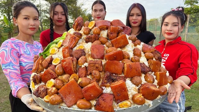Изумительный рецепт приготовления свинины, тушеной с яйцом и рисом, по-деревенски. Кухня Азии