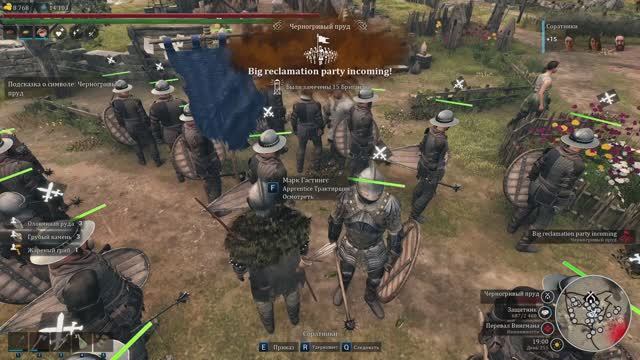 освобождаем очередную деревню . строим колокольню . разбили отряд бригандов .