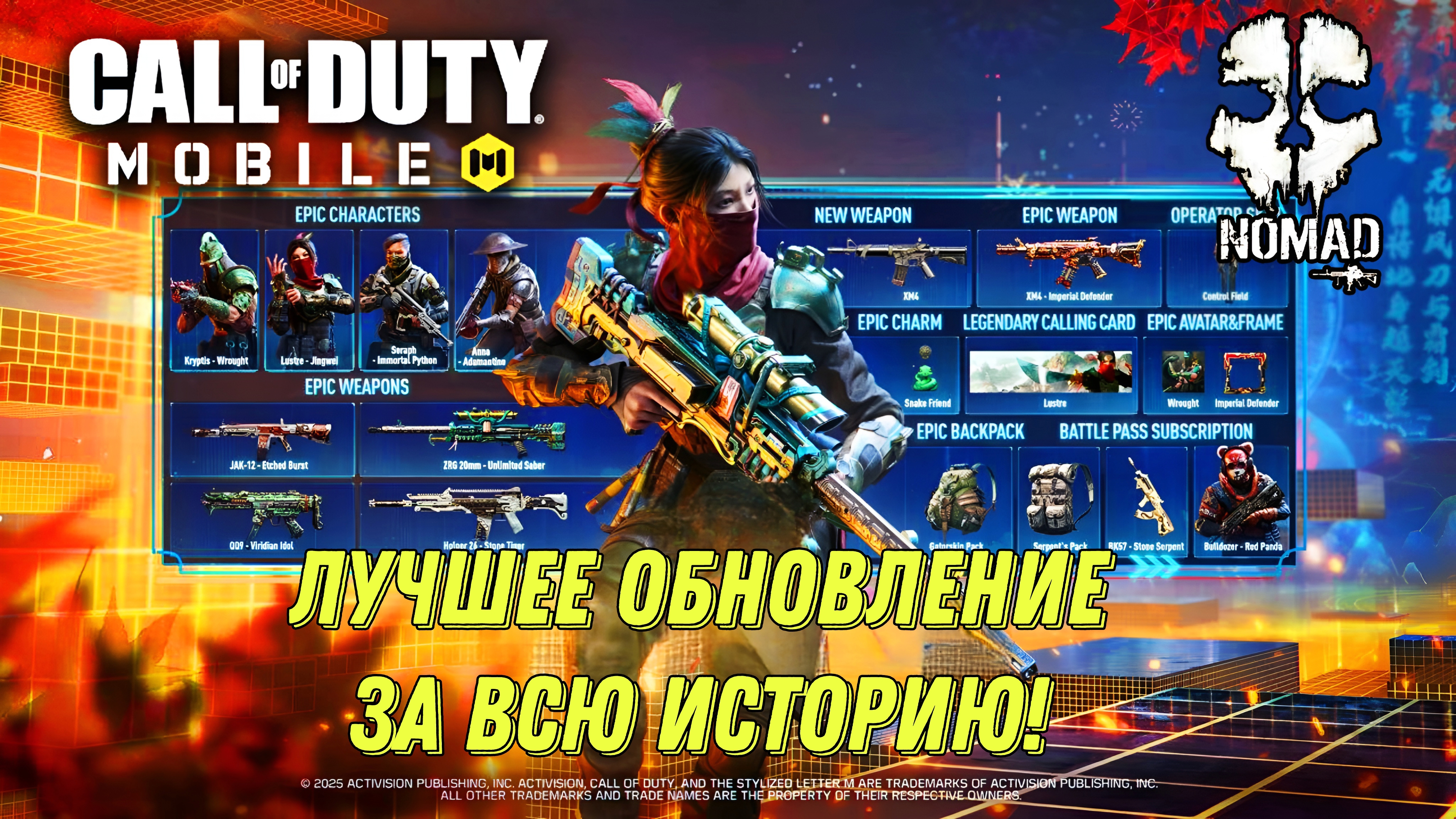 Всем привет с вами и сегодня, мы смотрим новое обновление сезона, которое стало самым, лучшим за всю историю игры codm и сегодня ты, узнаешь как получить бесплатное легендарное и мифическое оружие, так же будет много бесплатных наград включая новый, боевой пропуск этого 1 сезона. Так же нас ждёт, новое оружие прямиком из Call of Duty Black Ops 6 штурмовая винтовка XM4 и новый класс королевской битвы, так же обновлены награды рейтинга. Скажу смело: это лучший сезон, за всю историю игры, тематика Китайского нового года, как оставалась лучшей так ей и останется, почаще бы делали бы скины на Азиатскую тематику в codm и тогда, от игроков не было бы отбоя скажу так, что этот сезон воистину самый лучший достойный королевской змеи этого 2025 года!😉 Магазин доната: https://t.me/TheEveryStore Бот магазина для быстрой покупки: @TheEveryStore_bot Отзывы магазина:https://t.me/TheEveryStore/11 Основной телеграм канал: https://t.me/youtube_nomadpro Новостной Telegram канал NOMAD PRO NEWS: https://t.me/nomadpro_codmnews Официальная ВК группа канала: https://vk.com/nomadpro_official Мой Tik Tok: https://www.tiktok.com/@nomadprocodm?_t=8gJEAsNdMqP&_r=1 World of Games https://vk.com/worldofgames2022 #callofdutymobile #codm #codmobile #Обновление #1сезон