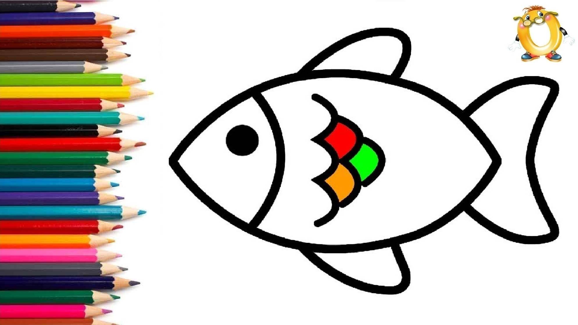 Мультик - раскраска для детей РЫБКА. Учимся как рисовать РЫБУ // ОБУЧАШКА ТВ