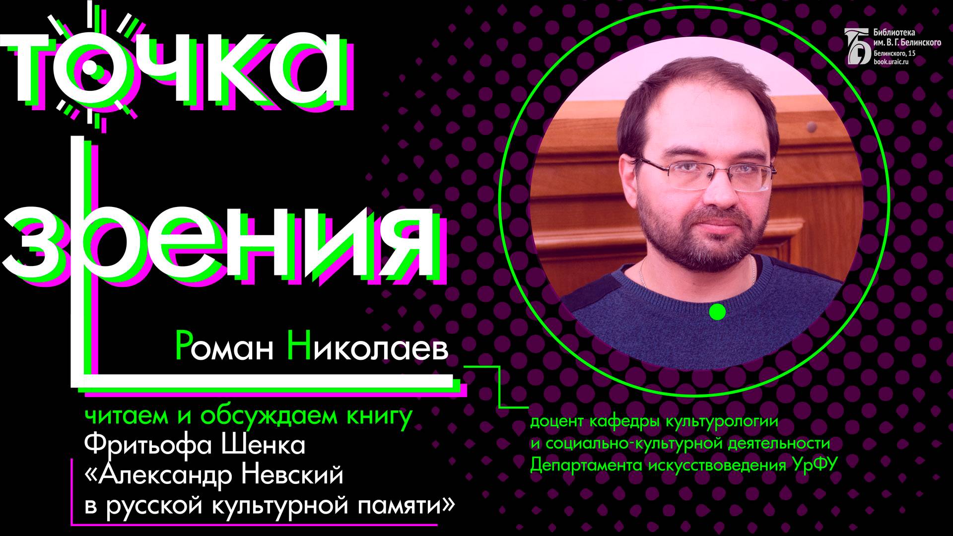 Вместе с Романом Николаевым заглянем в уникальную по охвату источников книгу немецкого историка Фритьофа Шенка об одной из самых легендарных фигур российской истории. Как образы Александра Невского, запечатленные в летописях, иконах, идеологии и государственной пропаганде, живописи, скульптуре, кинематографе используются различными историческими авторами и формируют коллективную память о нем. Спикер: Роман Николаев, доцент кафедры культурологии и социально-культурной деятельности Департамента искусствоведения УрФУ. Камера, монтаж: Анна Порошина. Свердловская областная универсальная научная библиотека им. Белинского http://book.uraic.ru/ сайт https://vk.com/club6745014 VK
