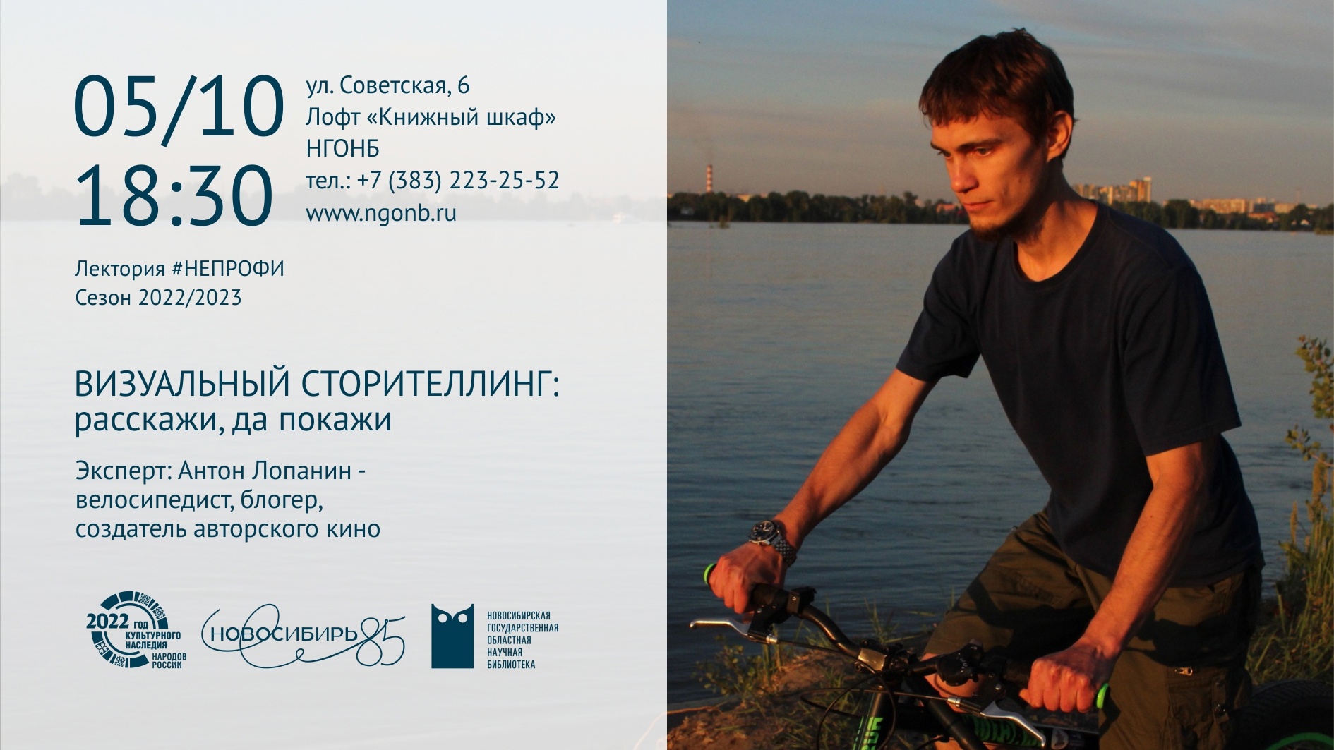 НГОНБ 2022-10-05 Ведущий: Антон Лопанин — контент-редактор в СибГУТИ, а также велосипедист, блогер и создатель авторского кино. «Ищу интересные истории, а они частенько находят меня. Видеть интересное в мире и превращать впечатления в понятные визуальные образы доступными средствами – это увлекательное хобби», — пишет Антон. Книги по сторителлингу в каталоге НГОНБ: http://poisk.ngonb.ru/opacg2/?size=3&iddb=1&label0=FT&query0=сторителлинг&_action=bibl%3Asearch%3Aadvanced