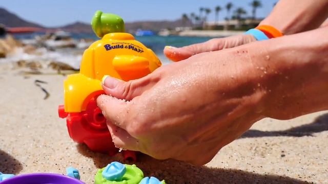 Видео про машинки на пляже - игрушечный конструктор - подводная лодочка