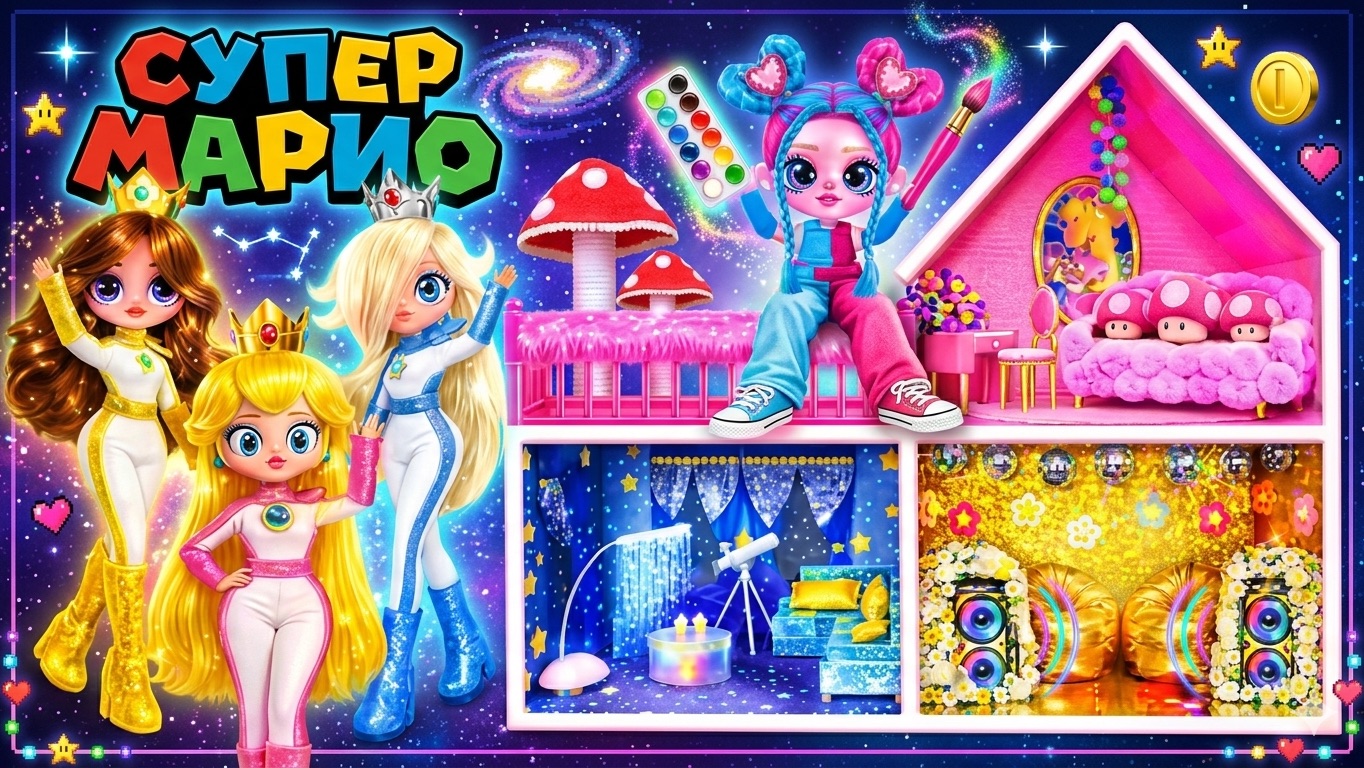 Делаем 3 Домика для Принцесс Пич, Дейзи и Розалины в Стиле Супер Марио! Поделки для Кукол ЛОЛ ОМГ!