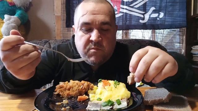 деревенский мукбанг - картошка с селедкой и солянка она же тушеная капуста