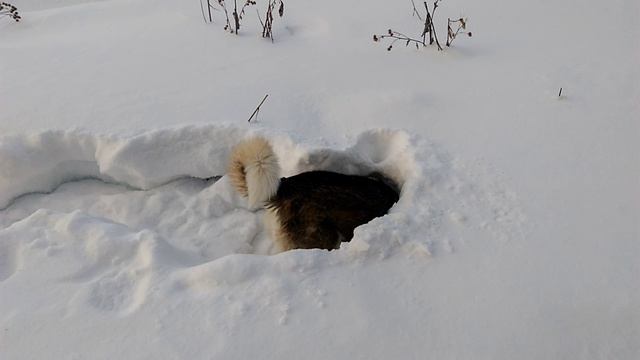 Что же ищет под снегом эта собака? Эта Хаски обожает ловить мышей под снегом и просто купаться в снежных сугробах.