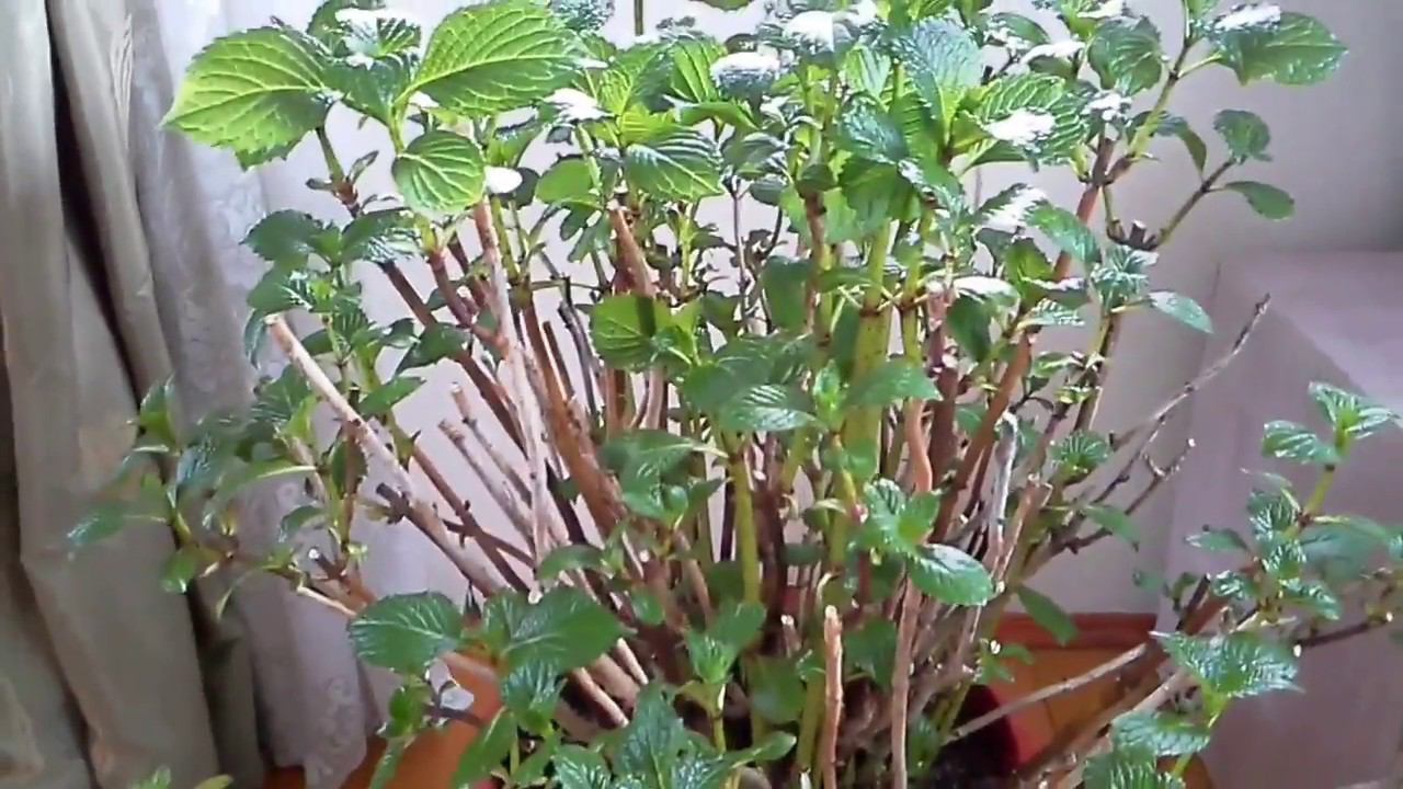 Зимовка крупнолистной гортензии в горшке на даче.Состояние на 27 марта