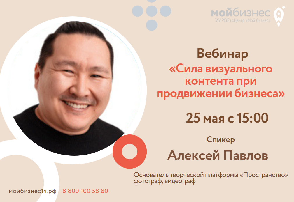 Спикер Алексей Павлов — Основатель творческой платформы «Пространство»; — Фотограф; — Видеограф. Опыт работы в медиа индустрии более 10 лет! Программа: Визуальный контент как инструмент развития бизнеса. Разбор инструментов продвижения. Обзор реклам. Как вести работу с блогерами. Ответы на вопросы