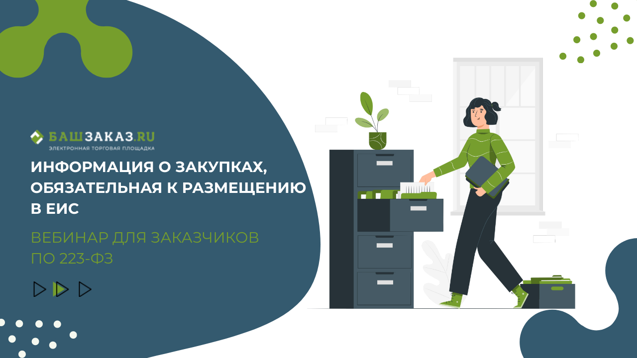 На вебинаре расскажем о нормативных требованиях к размещаемой в ЕИС информации о закупках, форме, сроках, особенностях. Вебинар будет интересен как начинающим заказчикам, так и опытным, «держащим руку на пульсе» изменений закупочного законодательства. Регистрация на бесплатные вебинары для заказчиков по 223 - ФЗ https://lp.bashzakaz.ru/webinar