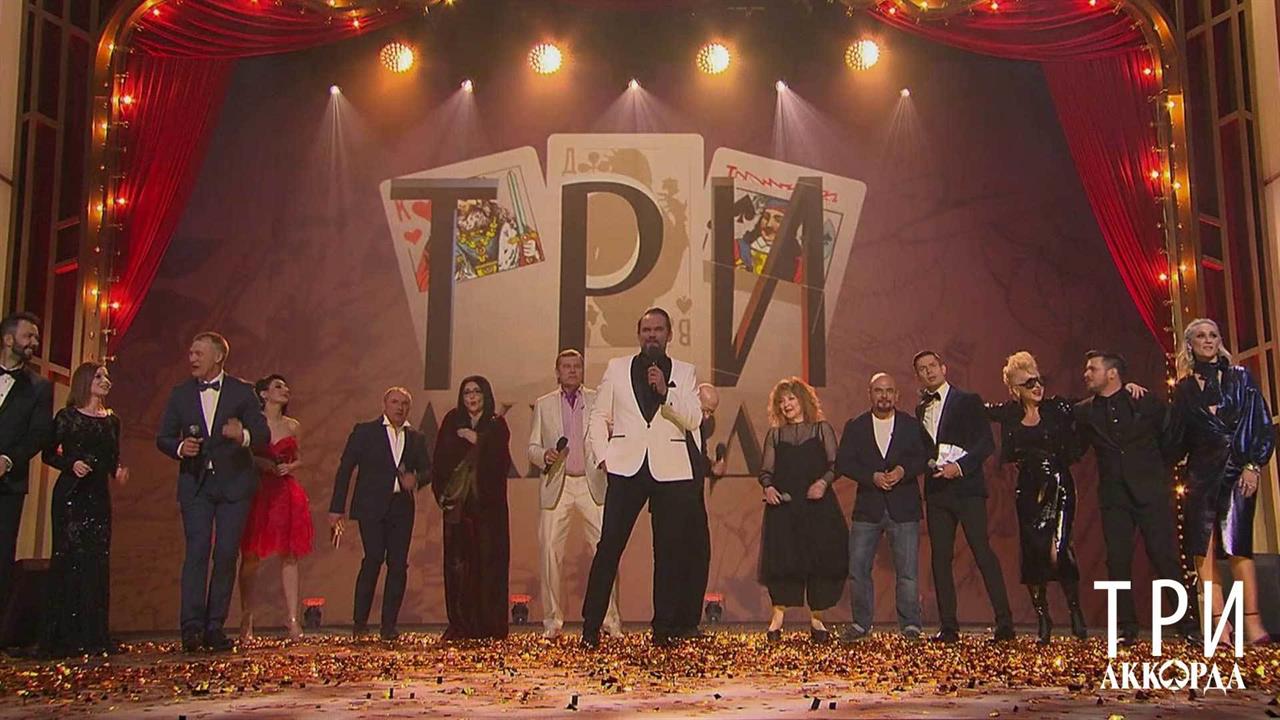Первый канал представляет новый сезон народного шоу «Три аккорда», где поют авторскую песню и где звучит самая душевная музыка. «Три аккорда» - это конкурс и одновременно тематические концерты, где исполнители представляют на суд зрителей собственные интерпретации знаменитых шлягеров. Ведущий – Максим Аверин. Участники четвертого сезона шоу «Три аккорда»: Николай Фоменко, Валентина Легкоступова, Стас Пьеха, Екатерина Семенова, Юлия Савичева, Денис Клявер, Ксана Сергиенко, Анатолий Журавлев, Алла Рид и Интарс Бусулис. В финале в новом прочтении прозвучат песни: «Городок», «Ангел-хранитель», «А ты все ждешь», «Когда фонарики качаются ночные», «Мама», «Non, Je Ne Regrette Rien», «Чистые пруды», «Рюмка водки», «Ягода-малина» и «Посвящение Беранже». Члены жюри - Александр Новиков, Александр Розенбаум, Сергей Трофимов и Лолита Милявская.