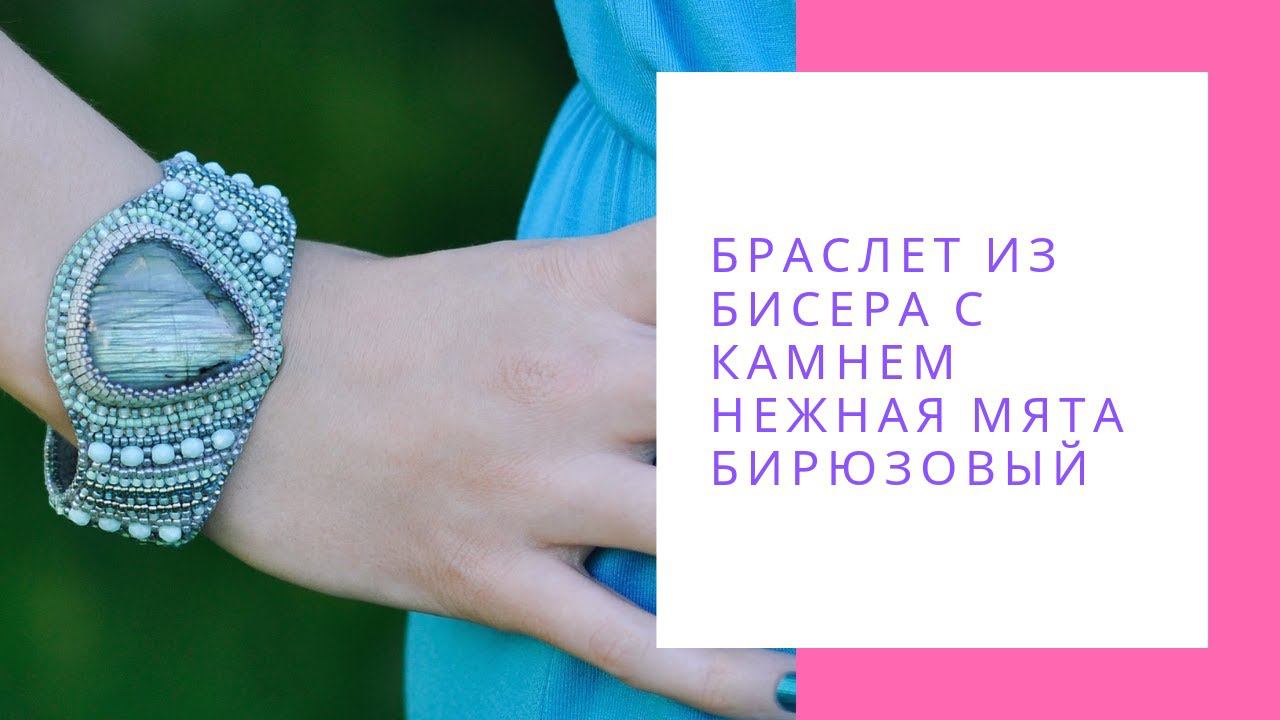 Браслет из бисера с камнем Нежная мята бирюзовый крупный браслет NataliaLuzik