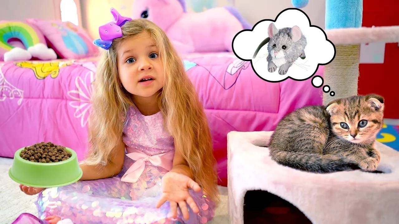 Диана учится ухаживать за котёнком