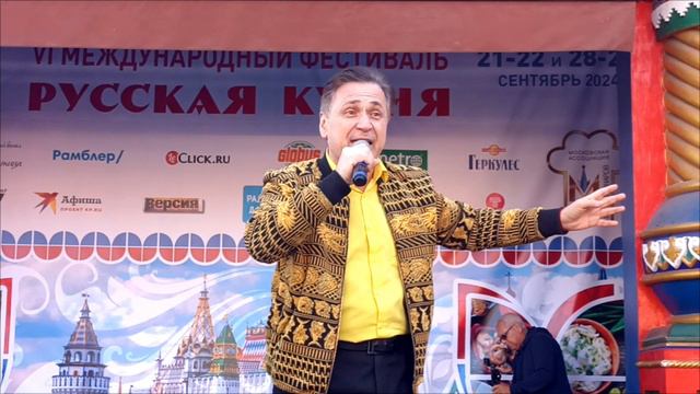 Фрагмент выступления Михаила Михайлова на фестивале "Русская кухня-6" в Измайловском Кремле. Музыкальная площадка от телеканала "Жар птица" Авторская песня "С днем рождения!" для именинников концерта.. Сьемка Натальи Михайловой 22 сентября 2024