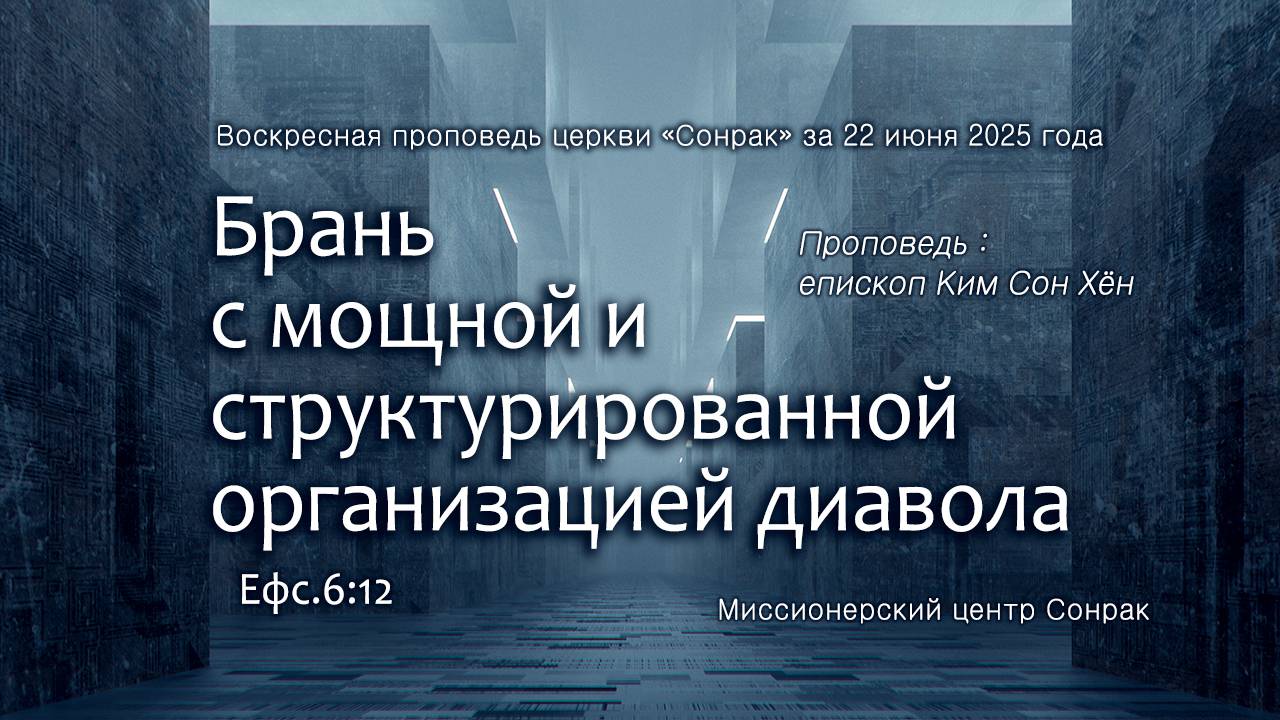 «Диавол? Он ничего из себя не представляет. Меня он не обманет, ведь я усвоил Библию. Пусть боятся те, кто не знает истины. А за меня не переживайте». Подобные мысли неизбежно ведут к поражению в битве с диаволом, потому что за ними скрывается полное незнание врага. Есть мудрое выражение: «Знай врага и знай себя — и сто битв не принесут тебе поражения». Люди, пренебрегающие диаволом, совершенно не знают, насколько он силен, и абсолютно не осознают собственную слабость перед ним. Напротив, легко становятся его служителями. Жизнь веры – это брань. Жестокая брань не на жизнь, а на смерть, со всевозможными коварствами врага. Проблема в том, что наш враг – это не плоть и кровь. Поэтому он видит нас, а мы его нет. Но проблема не только в этом. Они внедряют мысли и разжигают эмоции, и настолько скрытно, что человек даже не замечает. В результате человек убежден, что действует по собственной воле, хотя на самом деле находится под управлением. Более того, диавол — мастер разделения. Поэтому человек не способен противостоять ему. Диавол управляет мощной и четко организованной структурой. Обычно мы говорим, что сражаемся с диаволом, но на деле мы сталкиваемся с разными видами падших ангелов. Это главный штаб, разрабатывающий злые стратегии; это среднее командование, отвечающее за реализацию стратегий и зону их действия; это силы, манипулирующие политикой, культурой и институтами для подчинения мирового порядка тьме; это полевые диверсанты, направленные на разрушение Церкви коварными и жестокими методами. Мы имеем отношение с организованным боевым формированием, обладающим мощнейшей ударной силой. По сравнению с огромной организованной силой диавола человек – крайне ничтожное существо. Сможем ли мы устоять перед атаками диавола, если будем полагаться на собственные знания и опыт, считая это надежной и постоянной защитой? Кто верит, что находится под постоянной защитой, не будет даже думать полагаться на Бога. Надменный и уверенный в своей безопасности, напротив, станет добычей диавола. Чтобы устоять в духовной брани до конца, прежде всего необходимо признать свою немощь. Однако нам не стоит бояться. Наш Господь уже одержал победу! Он настолько велик, что никакое другое существо не может сравниться с Ним! Своей силой мы не можем победить, но можем силой Бога. Его сила воскресила Иисуса из мертвых, вознесла Его на небесный престол, а грешников сделала гражданами Небес! Организация диавола стремится разрушить церковь и действует системно, но у нас есть всеоружие от Бога. Мы уже выиграли эту брань! Давайте признавать перед Богом свою слабость и продвигаться вперед с силой, могуществом и методами от Бога! Брань с мощной и структурированной организацией диавола Ефс.6:12 Воскресная проповедь церкви «Сонрак» за 22 июня 2025 года Проповедь : епископ Ким Сон Хён Миссионерский центр Сонрак вся проповедь здесь ↓↓↓↓↓↓↓↓↓↓↓↓↓ https://rutube.ru/video/0fed8563e472538d1fab926f6151d94a/?r=wd Музыка Треков: 1 You can Roman Dudchyk The Spark That Stayed Музыка ЭЛ.ПОЧТА: berearussia2015@gmail.com САЙТ: http://www.berearussia.org/ ЮТУБ: https://www.youtube.com/channel/UCHrXAWxq5MlDJoY87fMjknw РУТУБ: https://rutube.ru/channel/25256916/about/ ТЕЛЕГРАМ: https://t.me/BLGOMISLIE ОДНОКЛАССНИКИ: https://ok.ru/profile/145281546893 ЯНДЕКС ДЗЕН: https://zen.yandex.ru/id/62327455dfb5ea6bd6b08d31 В КОНТАКТЕ: https://vk.com/id713958967