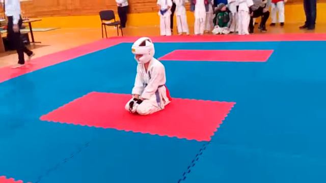 Пазухин Евгений Игоревич 1 бой. Первенство ДЮСШ Бологое по Киокусинкай. 11 декабря 2016