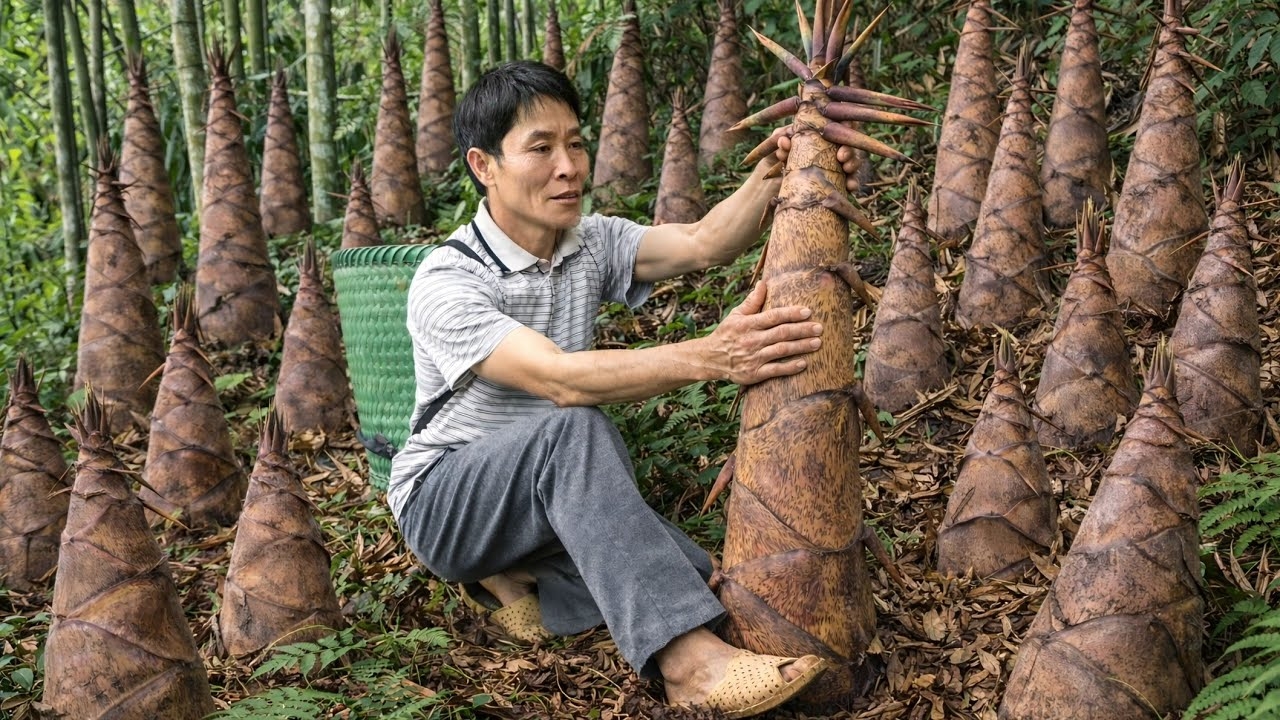Сбор урожай побегов бамбука. Несу на рынок для продажи. Работаю в огороде. Жизнь и быт во Вьетнаме