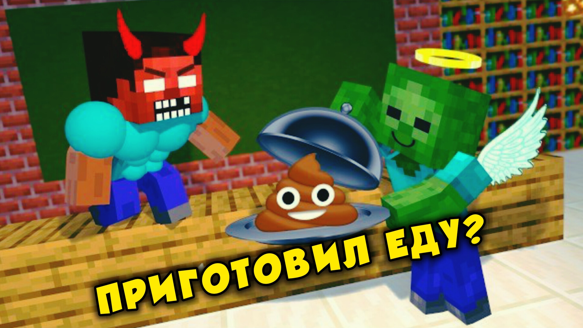 Кулинарный челлендж среди мобов в Майнкрафте, мультфильм
