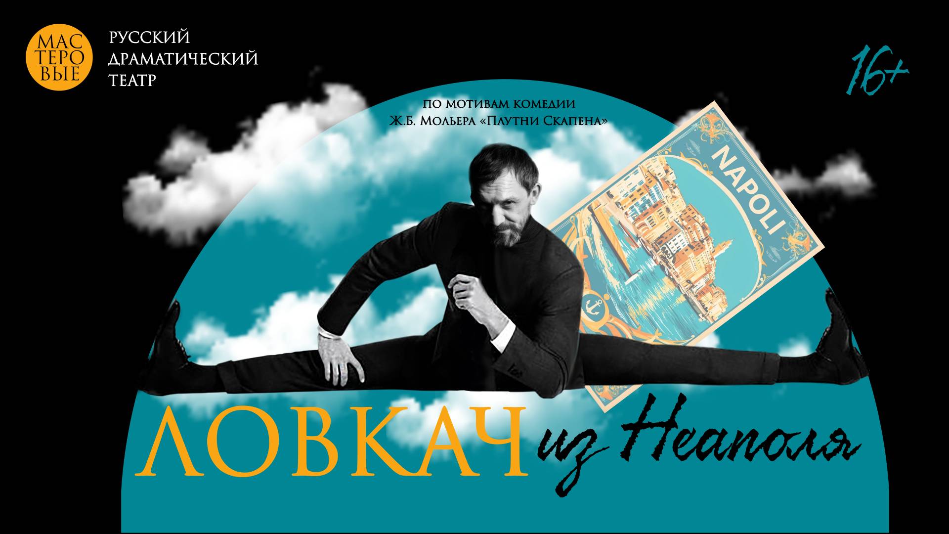Комедия. Дамир Салимзянов (по мотивам пьесы Ж.Б. Мольера "Плутни Скапена"), 16+ От создателя популярной комедии "Дуры мы, дуры" Юг Италии. Жара. Неаполь. Город криминала и любви... Юный Оттавио тайно женился на Софи. Но его отец против этого брака. Юный Леонардо тайно женился на Джине. Но и его отец не рад этому. Помочь несчастным молодожёнам, а заодно превратить драму в безумную комедию может только он – ЛОВКАЧ ИЗ НЕАПОЛЯ. Режиссер-постановщик: Дамир Салимзянов, заслуженный деятель искусств Удмуртской Республики Сценография и костюмы: Елена Сорочайкина, заслуженный работник культуры Республики Татарстан Художник по свету: Валентин Бакоян (г. Санкт-Петербург) Композитор: Виталий Сокол Продолжительность спектакля: 2 часа 40 минут. Антракт 15 минут