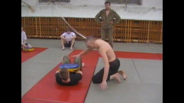 Один из вариантов нанесения добивающего удара коленом в партере.