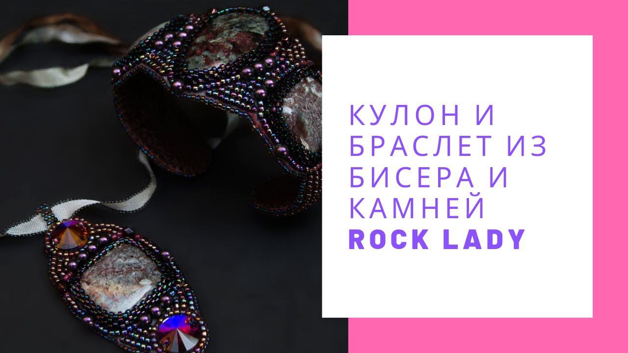 Кулон и браслет из бисера и камней Rock lady бордовый сливовый NataliaLuzik