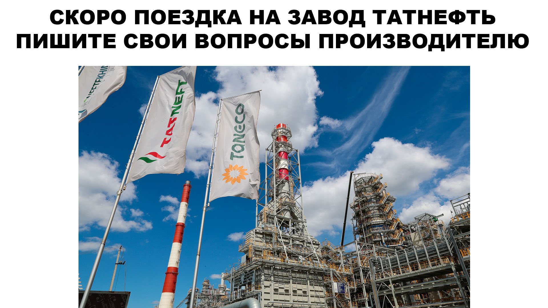 Запланирована поездка на завод Татнефть. Пишите свои вопросы, комментарии, пожелания #татнефть #taif