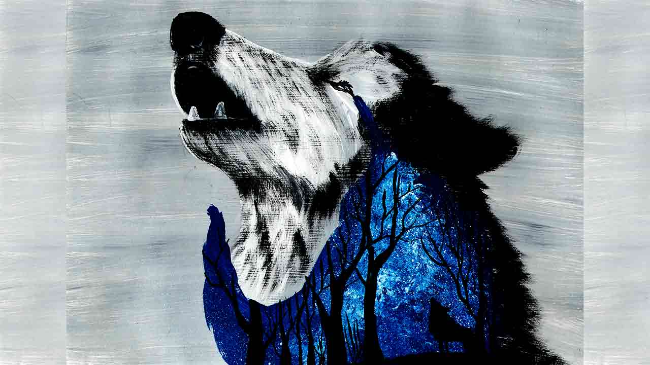 Как нарисовать волка. Как нарисовать волка воющего на луну. Волк воет. Рисуем необычную картину.