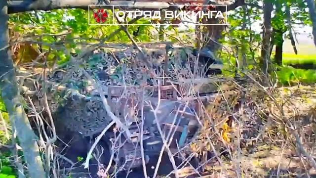 Эпичное уничтожение замаскированной вражеской БМП-2 на Запорожском направлении. Работают дроноводы отряда «Викинг» и 392-го мотострелкового полка.