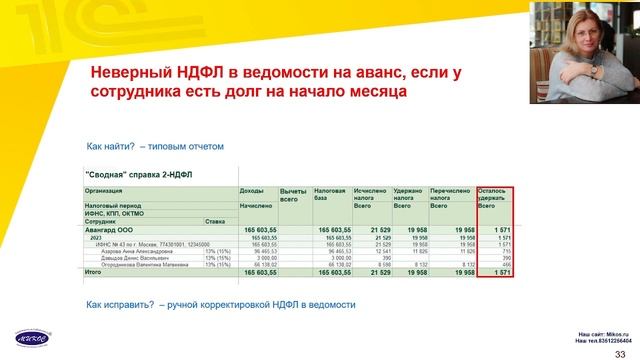 Вебинар «НДФЛ – головная боль 2023 года» Лектор на вебинаре: Немчанинова Наталья Григорьевна Ведущий специалист компании Микос со стажем работы более 20 лет Программа вебинара: Обзор ошибок НДФЛ в 2023 году: ""что уже исправлено и над чем еще работаем"" ""Зарплата за месяц меньше аванса: разбираемся с расхождениями"" ""Трудности перерасчета и решение этой проблемы"" ""НДФЛ и совместители: особенности и проблемные моменты"" ""Вычеты по НДФЛ: как избежать типичных ошибок"" ""Ошибки в уведомлениях и форме 6-НДФЛ: как их предотвратить"" По вопросам внедрения и обучения программе 1С - обращайтесь в нашу компанию - наши специалисты с удовольствием вам помогут! Компания «Микос» осуществляет продажу программ 1С в Челябинске. Цель нашей компании: используя программы 1С, делать жизнь бухгалтера и руководителя в России более легкой, а работу компаний - более эффективной. Наш сайт: https://vk.cc/c0Bixf ❓Хотите получить консультацию по 1С? Звоните по телефону: 8 (351) 225-64-04. Также Вы можете связаться с нами по WhatsApp / Viber / Telegram: 8-9000-23-09-52 Адрес: Челябинск, ул. Энтузиастов, д. 28а, 1 этаж Работаем дистанционно по всей России. Пишите нам в Telegram! Ссылка: @Mikos1C_bot Ставьте лайк и подписывайтесь на наш канал, чтобы быть в курсе выхода новых видео! Вконтакте: https://vk.com/mikos1c Телеграм Микос: https://t.me/mikos_company Одноклассники: https://ok.ru/mikos.programmy1s Яндекс Дзен: https://zen.yandex.ru/mikos_programmy1c Если Вам нужно получить ответ на вопрос по работе в программе 1С, напишите свой комментарий - мы ответим! #1С #программы1С #НДФЛ