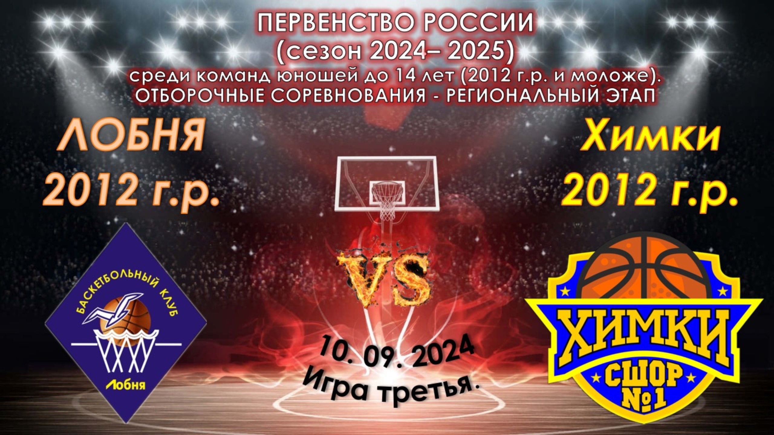 Первенство РОССИИ по баскетболу среди команд юношей до 14 лет (2012 г.р. и моложе) сезон 2024 - 2025 г. отборочные соревнования - региональный этап (Московская область) Игра третья. 10 сентября 2024 года