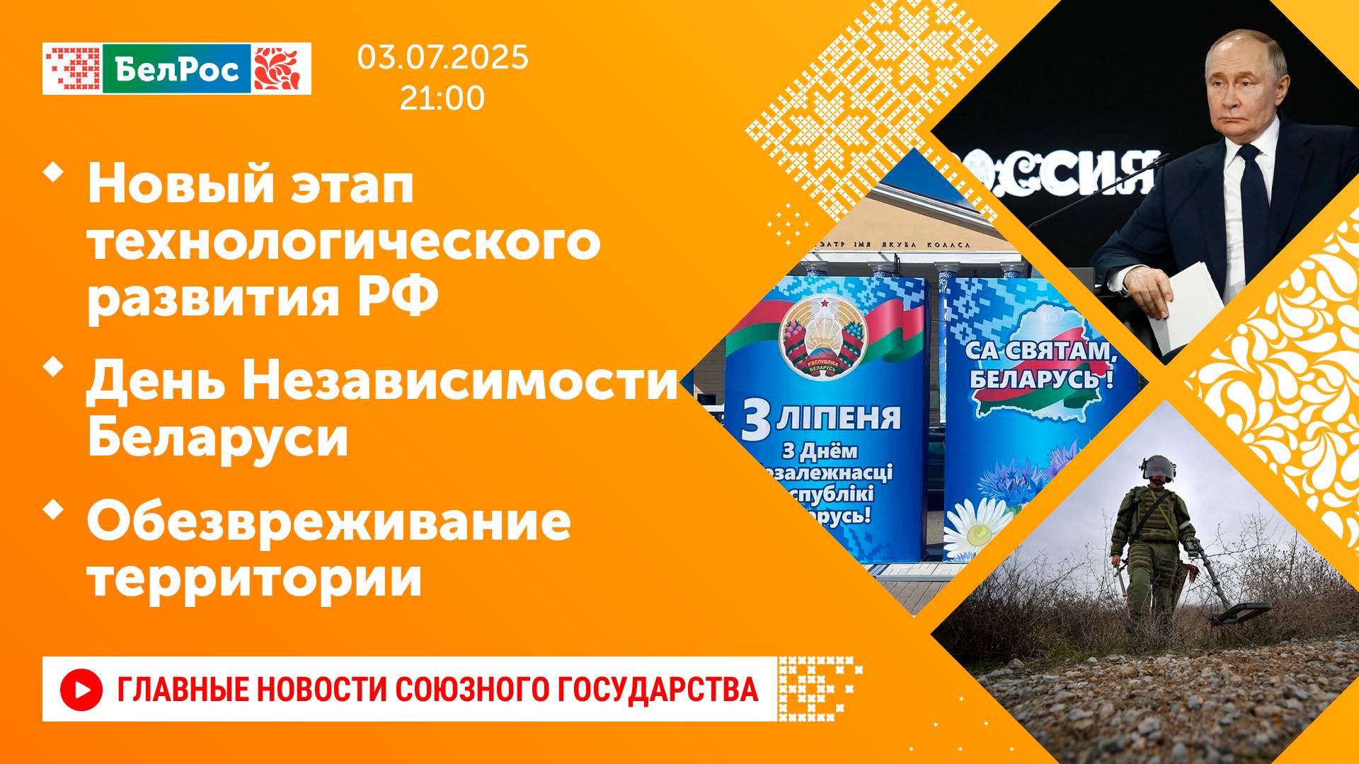 Новый этап технологического развития РФ / День Независимости Беларуси / Обезвреживание территории