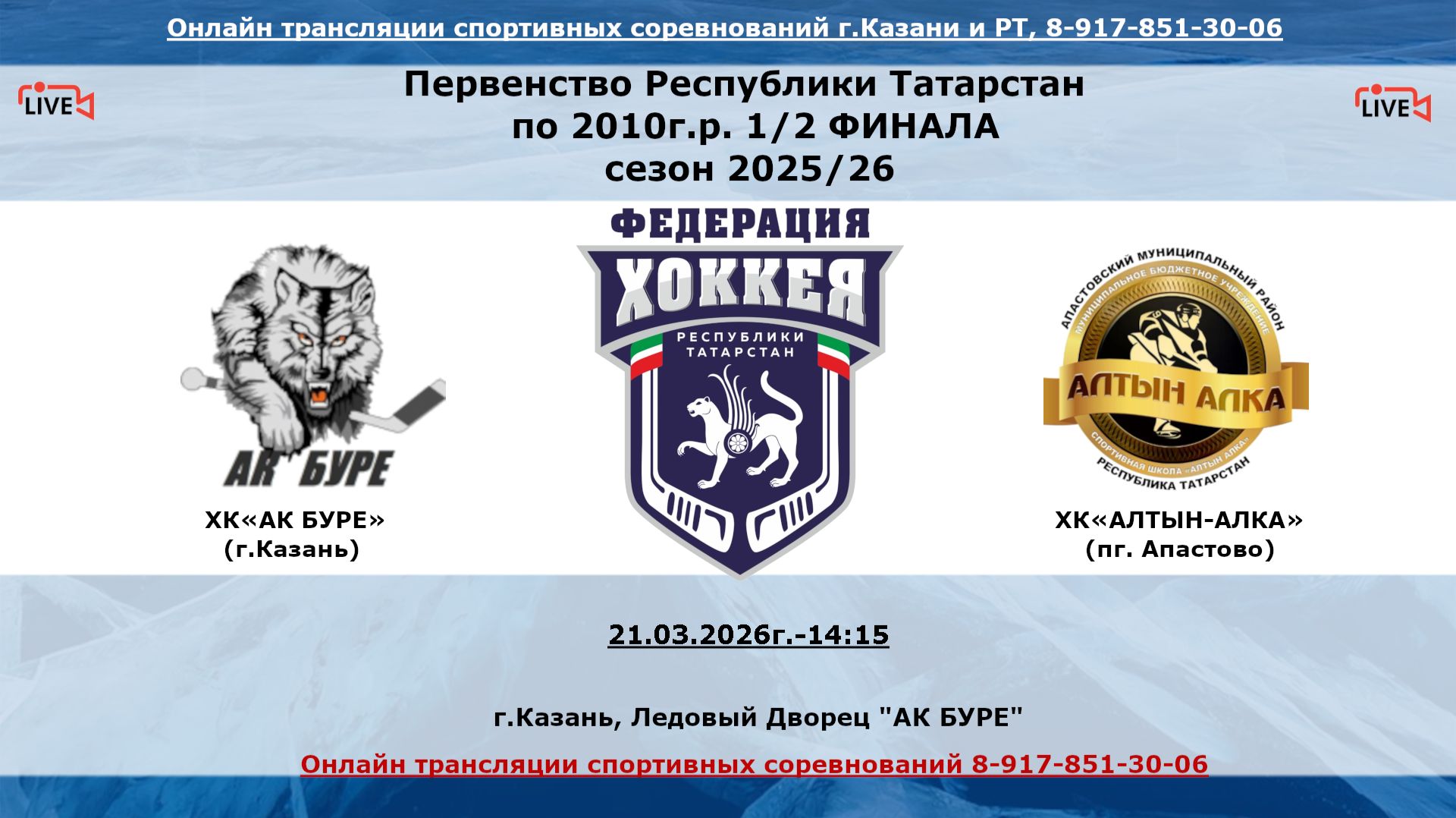 ХК«АК БУРЕ» (г.Казань) - ХК«АЛТЫН-АЛКА» (пг. Апастово)