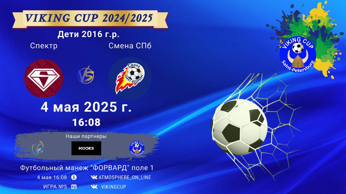 VIKING CUP среди команд 2016 г.р. (U9), Поле 1 4 мая 2025 САНКТ-ПЕТЕРБУРГ, ФЦ "Форвард" ФК "Спектр" - ФК "СменаСПб"/VIKING CUP, Игра №5, 04-05-2025 16:08