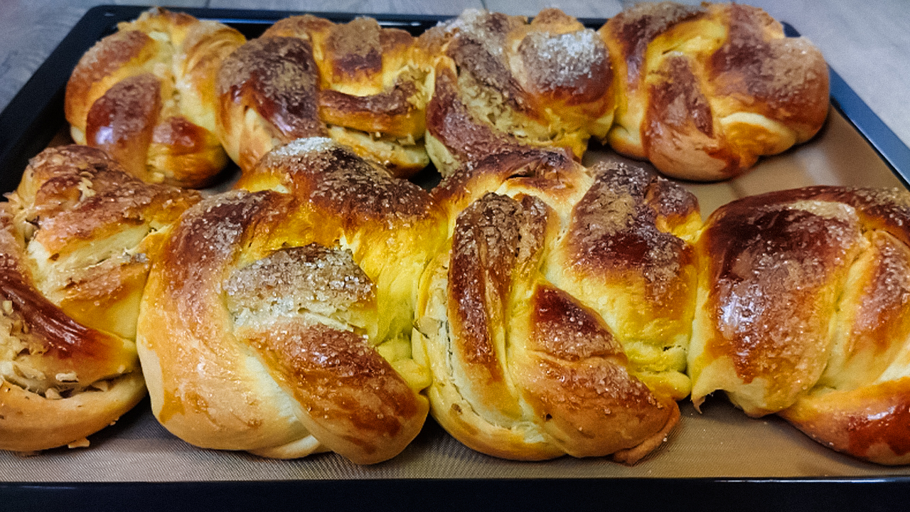 Хотите себе в копилку еще один рецепт сдобной выпечки — смотрите релик и сохраняйте в закладки. Эти булочки придут по вкусу любому любителю выпечки. Подписывайся на канал и делись видео с друзьями. Также у меня на канале еще очень много вкусных рецептов, и еще больше рецептов ждет вас впереди. Вконтакте - https://vk.com/vkusnierecipe Одноклассники - https://ok.ru/group/70000000861442 Дзен - https://dzen.ru/vkusnierecipes https://dzen.ru/isrecipe Весь музыкальный контент, использующийся в видео на данном канале размещён на основании лицензии Creative Commons 4.0 вариант лицензии CC0 (https://creativecommons.org/licenses/by/4.0/) с медиатеки, где не требуется указания авторства. Ингредиенты: 250 миллилитров молока. 100 граммов сахара. 7 граммов дрожжей. 10 граммов ванильного сахара. 30 миллилитров растительного масла. 2 яйца. 600 граммов муки. щепотка соли. 30 граммов сливочного масла. 50 граммов грецких орехов. сливочное масло для смазывания. грецкие орехи. 1 яйцо для смазывания. сахар для посыпки. #булочки #рецептбулочек #вкусныерецепты #сладости #выпечка
