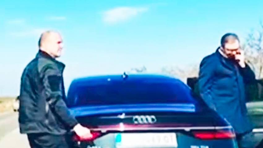 А автомобиля из президентского кортежа на трассе сначала начинает идти дым в районе левого заднего крыла, а затем отрывается часть колеса: https://rg.ru/2025/02/08/u-mashiny-iz-kortezha-vuchicha-na-hodu-otvalilos-koleso.html
