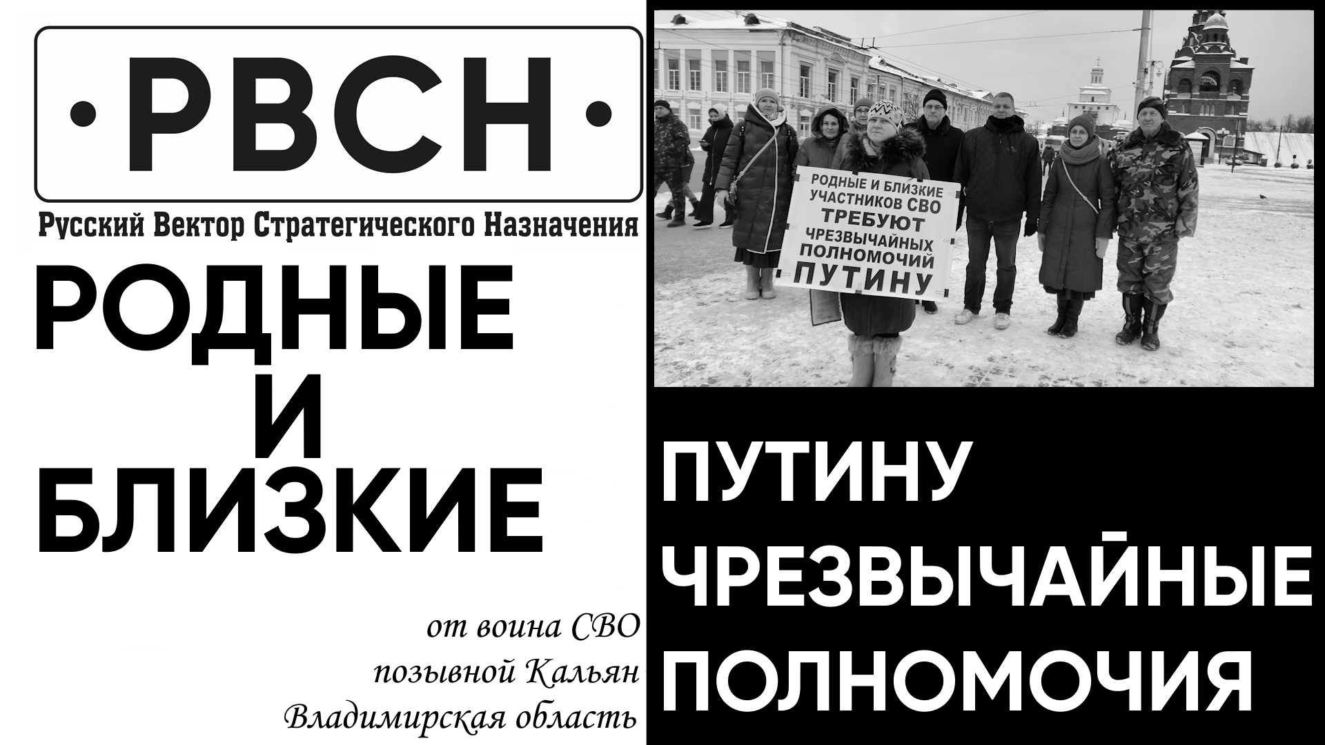 "Мы, жители Владимирской области, близкие участника СВО - позывной Кальян, обращаемся по его просьбе к Вам, Депутатам Государственной Думы и Сенаторам Совета Федерации, как представителям Законодательной власти от Владимирской области." Т̲р̲е̲б̲у̲е̲м̲ ̲ч̲р̲е̲з̲в̲ы̲ч̲а̲й̲н̲ы̲е̲ ̲п̲о̲л̲н̲о̲м̲о̲ч̲и̲я̲ ̲П̲у̲т̲и̲н̲у̲!̲!̲!̲ @rvsn_na_washington Меняем военную доктрину. rvsn1949@mail.ru - для связи Подпишитесь на РВСН: https://vk.com/rvsn_na_washington https://t.me/rvsn_na_washington https://dzen.ru/rvsn_na_washington https://rutube.ru/channel/22105991/ https://www.youtube.com/@rvsn_na_washington/videos https://ok.ru/rvsnnawashington ZИМОРОДОК: https://t.me/zimorodok52 https://www.youtube.com/c/ЗИМОРОДОК/v... https://vk.com/zimorodok52 БЕЛРУСИНФО Дзержинск: https://www.youtube.com/@belrusinfodzerzhinck/videos Помощь для развития канала: 2202 2056 2747 0195 Наталья Николаевна П. Мы ЗА чрезвычайные полномочия президенту России Владимиру Путину! Мы ЗА возврат полетных заданий в нашу ядерную триаду! Мы ЗА расследование событий 1991 года Верховным судом России!