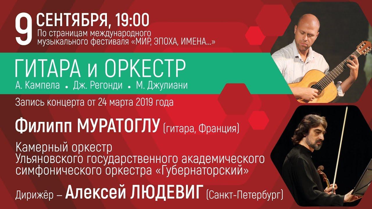 ГИТАРА И ОРКЕСТР Трансляция Филипп Муратоглу (гитара, Франция) Камерный оркестр Ульяновского государственного академического симфонического оркестра «Губернаторский» Дирижёр Алексей Людевиг (Санкт-Петербург) Запись от 24 марта 2019 г. #Ульяновск #Ленинскиймемориал #филармония #филармония73 #культура #культура73 #филармонияонлайн