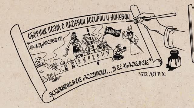 Посмотрите наш видеообзор книги Наума, в котором мы рассматриваем её литературную композицию и ход мыслей автора. Наум использует падение Ниневии и Ассирии в качестве прообраза того, как Бог противостанет всем жестоким человеческим империям и разрушит их.