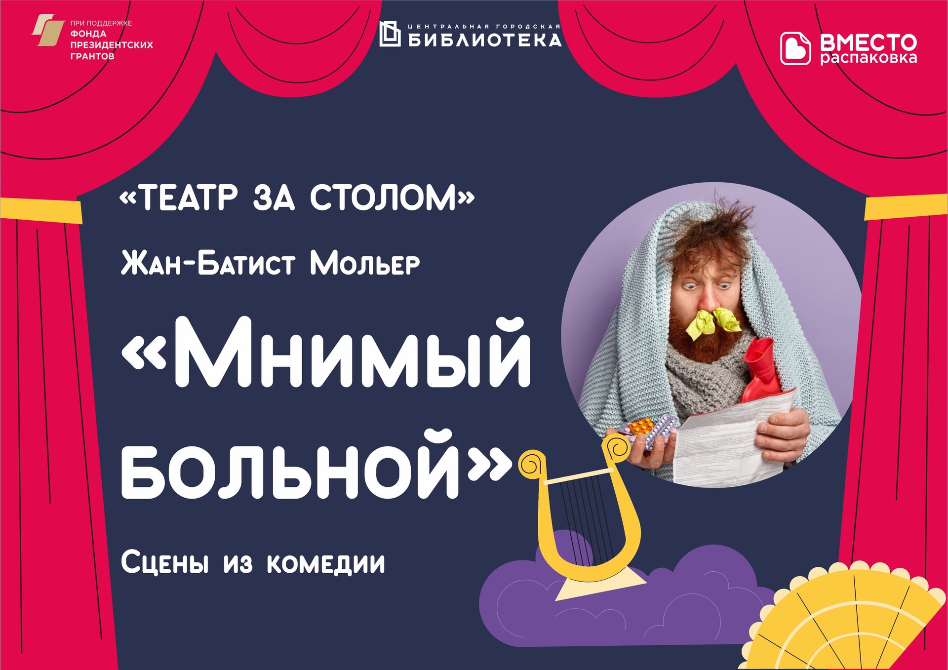 Новая постановка 2022 год мировая театральная общественность отмечает как Год Мольера. Жан-Батист Мольер прославил не только французский театр, он признан великим комедиографом мира, его пьесы уже несколько веков идут на сценах самых знаменитых театров планеты. «Театр за столом» решил обратиться к одной из последних – «Мнимому больному». Не только потому, что тема актуальна по сей день: Мольер умеет говорить о самом грустном весело. «Театр за столом» приглашает познакомиться со своей новой работой, созданной в рамках проекта «Вместо.Распаковка».