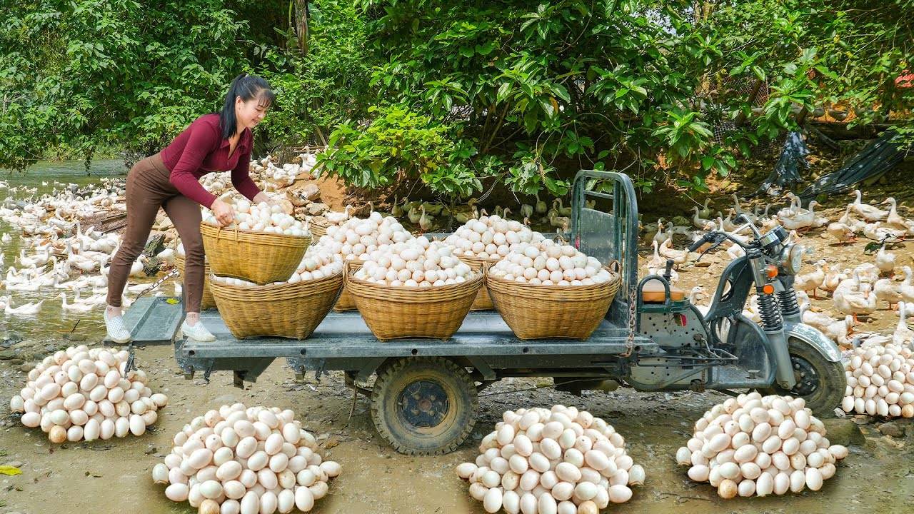 Трудолюбивая Хуонг. Собрано более 1000 утиных яиц на утиной ферме. Для продажи на рынке. Harvested Over 1000 Duck Eggs from Ducks Farm - Use Truck to Transport Many Ducks Eggs Go To Sell.
