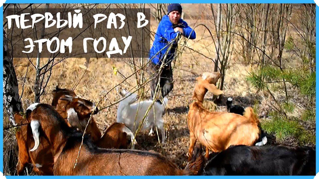 Первый раз вывели пастись коз в этом году да еще с пополнением