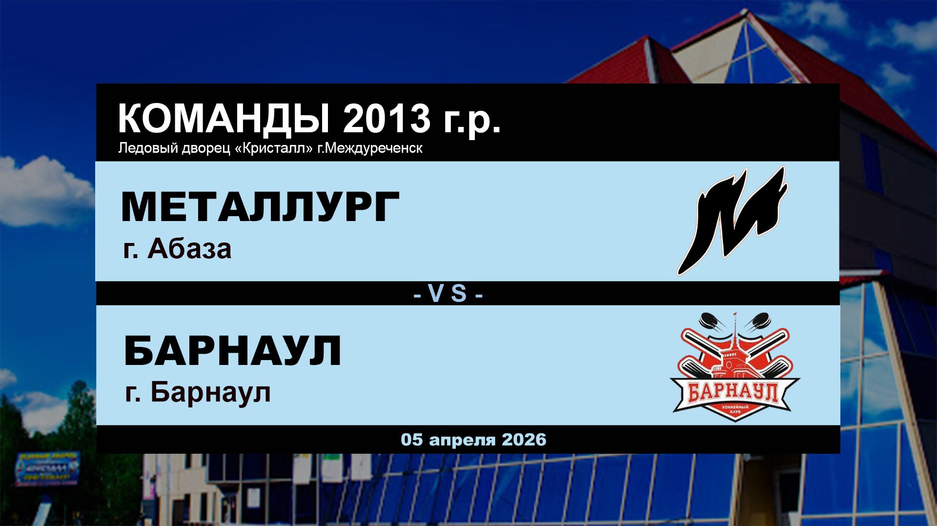 Хоккейная игра 05.04.2026 г. Команды 2013 г.р. Абаза - Барнаул Ледовый дворец "Кристалл" #Междуреченск #Металлург #Барнаул