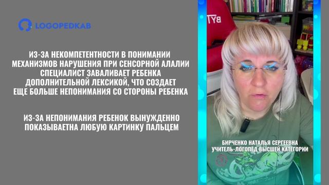 Сенсорная алалия. Коррекция. Секреты концепции Ковшикова Задания типа «выбери/покажи картинку по слову» при сенсорной алалии: не соответствуют механизму нарушения, не формируют слуховое восприятие,закрепляют неязыковые стратегии обработки информации, создают эффект псевдопонимания, не обеспечивают перенос навыка в реальную речь, формируют зрительную доминанту и подавляют слуховую обработку.⇛Записаться на бесплатную консультацию: https://logopedkab.com ⇛Познакомиться со специалистами логопедами: https://logopedkab.com/o-nas/byrchenko-natalia-serheevna/ https://logopedkab.com/o-nas/pestalova-liudmyla-ruslanovna/ ⇛Наш Telegram канал https://t.me/logopedkab * Meta признана экстремистской организацией в России.