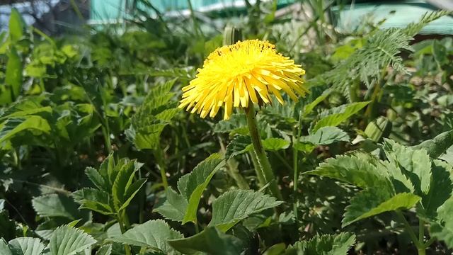 6 часов из жизни одуванчика. Под вечер он стал закрываться, хотя солнце еще светило вовсю! Сныть рядом тоже закрывает листья вечером